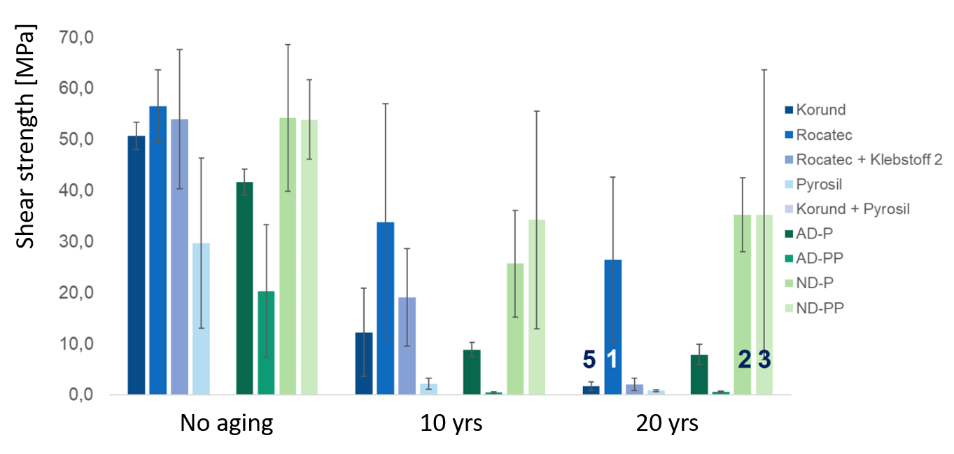 5% of original bonding strength possible after 10yrs with Ivoclar „Multilink“ + sandblasting according IFU.